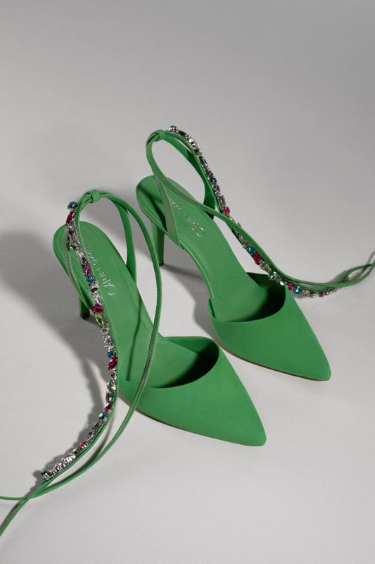 SCARPIN NOBUCK BICO FINO AMARRAÇÃO VERDE
