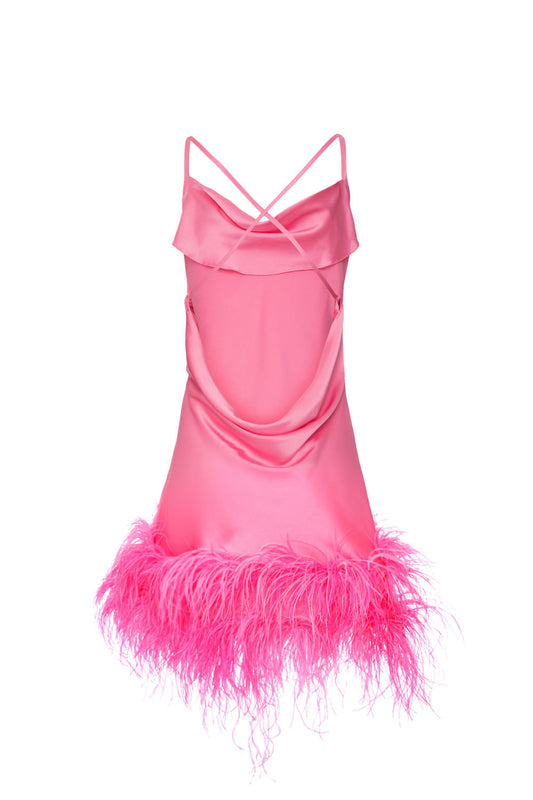 SLIP DRESS CURTO CLASSY FEATHERS ROSA