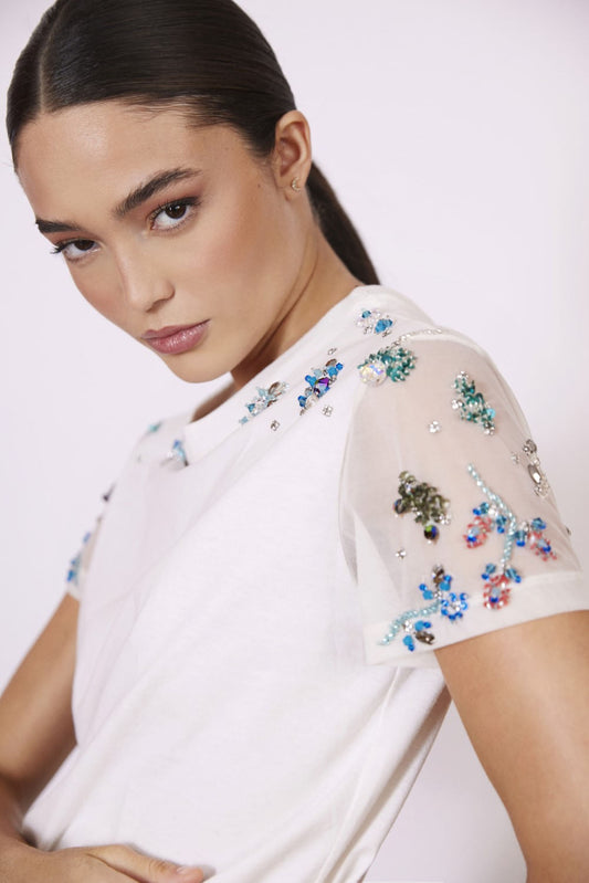EsgotadoT-SHIRT BORDADA SWAROVSKI OFF WHITE