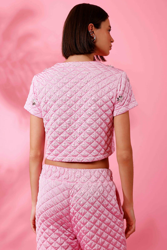 T-SHIRT BORDADA MATELASSÊ SHINE DROP ROSA