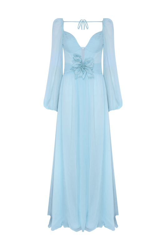 VESTIDO LONGO CHIFFON DAYDREAM AZUL CLARO
