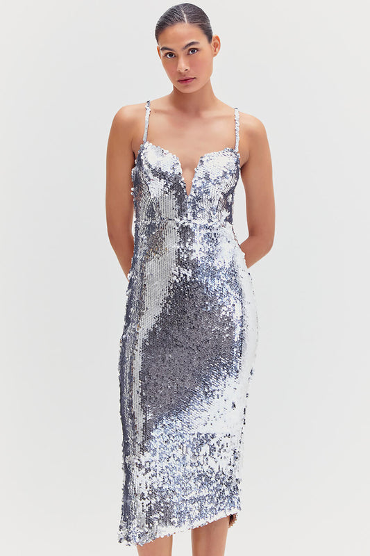 VESTIDO MÍDI PAETÊ ESCAPE PRATA