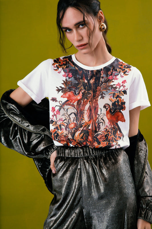 EsgotadoTEE FLORES VINTAGE MACAW OFF WHITE