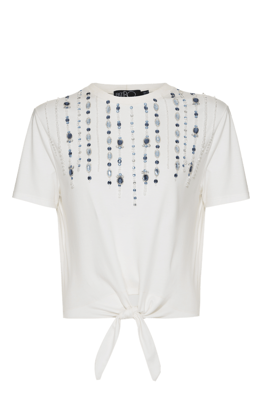 EsgotadoT-SHIRT BORDADA SWAROVSKI OFF WHITE