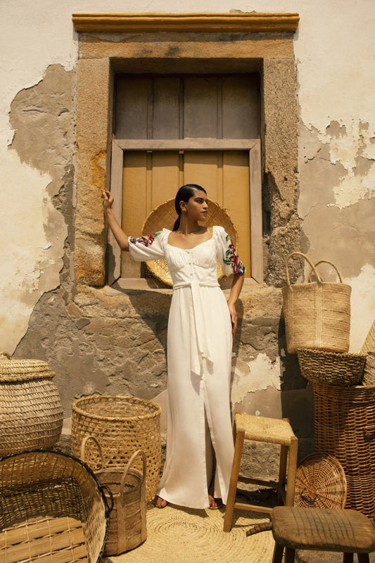 VESTIDO LONGO BUSTO FRANZIDO JASMINE OFF WHITE