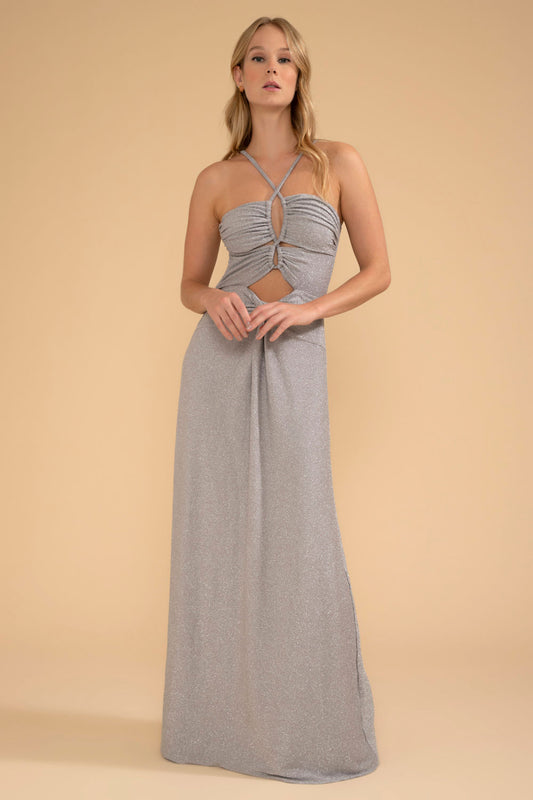 VESTIDO LONGO BUSTO FRANZIDO LUREX CAMDEN PRATA