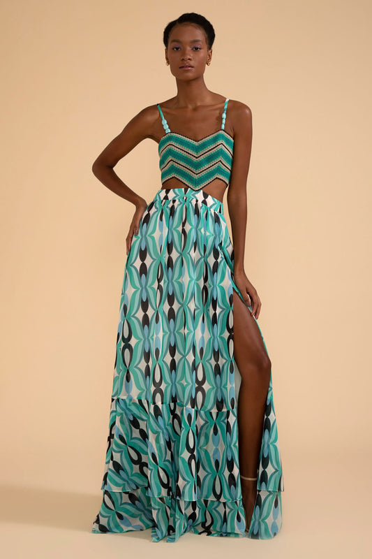 VESTIDO LONGO BORDADO CHIFFON BLOOMING TIFFANY