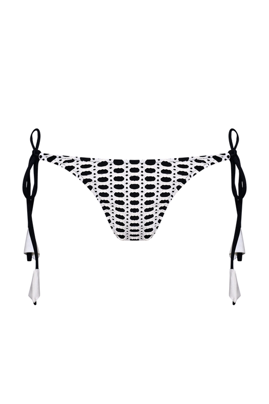 A parte de baixo segue a mesma proposta criativa. Há modelos com laterais mais largas, ideais para quem busca um visual mais impactante, e opções menores, com cintura alta ou baixa, que permitem brincar com proporções. Os franzidos estratégicos e amarrações ajustáveis complementam o caimento.