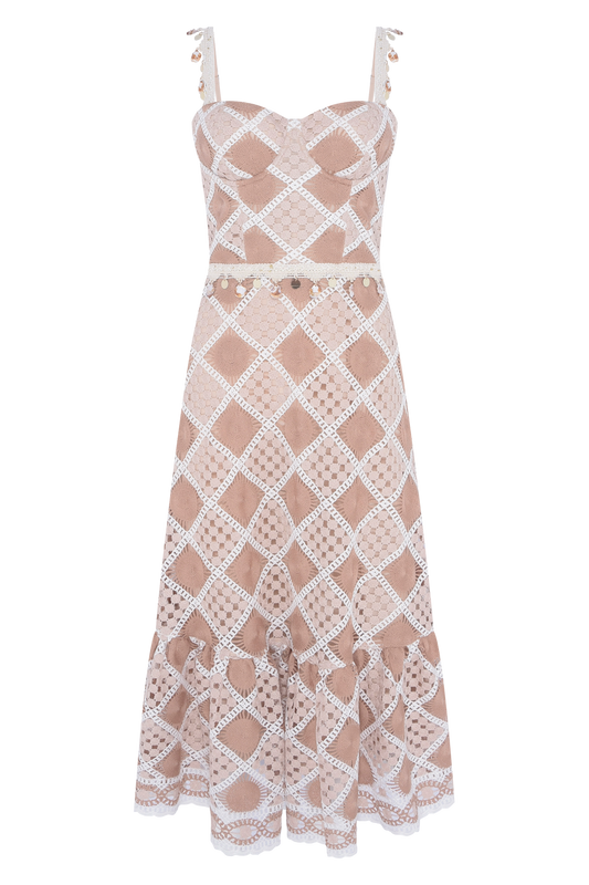 VESTIDO MIDI BOSSA CROCHET BEGE