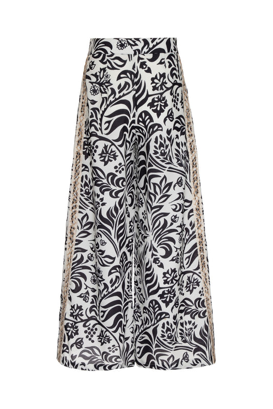 CALÇA AMPLA TROPICAL GRÁFICO OFF WHITE
