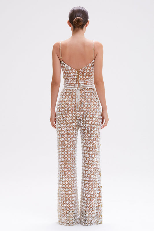 CALÇA PANTALONA PEDRARIA CREPE CRYSTAL OFF WHITE
