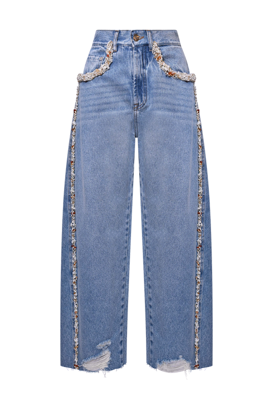 A pantalona nunca passa despercebida. Sua presença forte e volumosa traz imponência e valoriza a silhueta com equilíbrio. Usá-la é quase como desfilar: cada passo carrega uma pitada de arte.