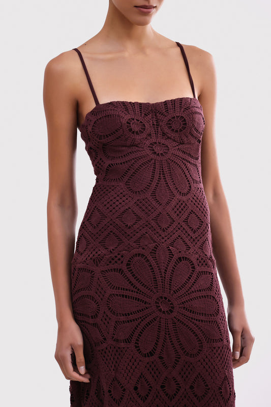 VESTIDO LONGO CROCHET FLOWER VERMELHO ESCURO