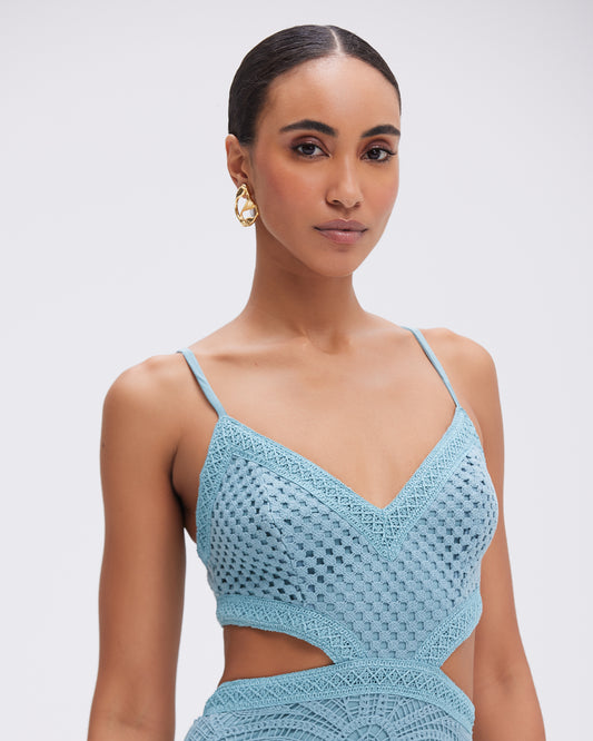 VESTIDO MIDI CROCHET FLOWER AZUL