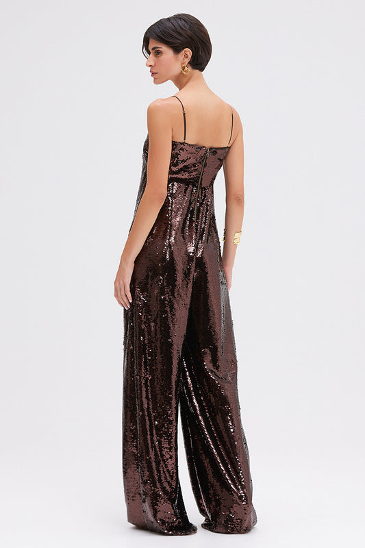 VESTIDO MÍDI PAETÊ CELESTIAL MARROM