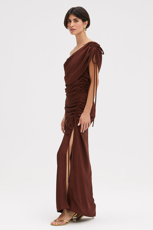 VESTIDO LONGO ALFAIATARIA ÂMBAR MARROM