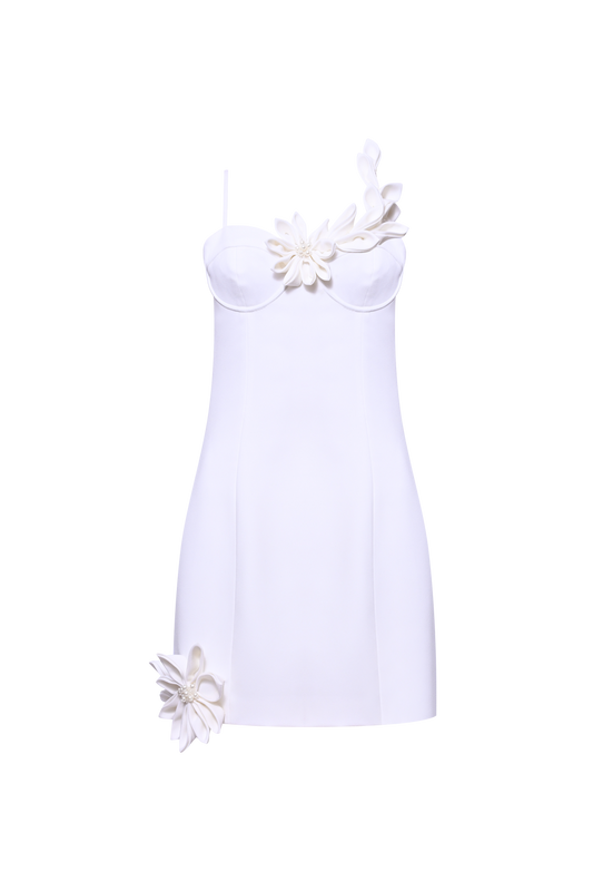 VESTIDO CURTO CREPE DHALIA OFF WHITE