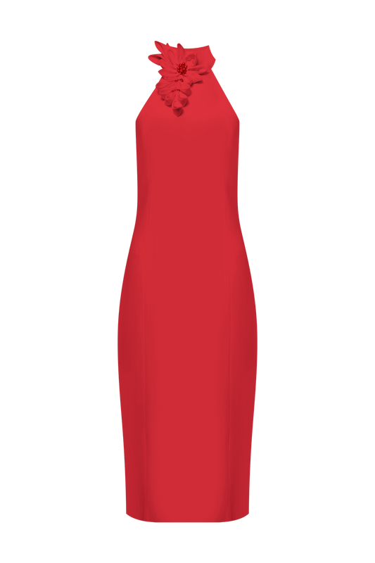 VESTIDO MIDI CREPE DHALIA VERMELHO