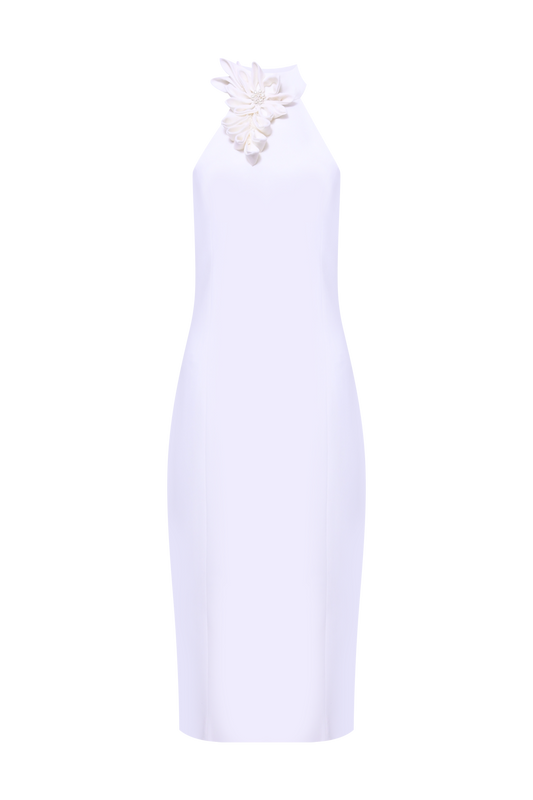 VESTIDO MIDI CREPE DHALIA OFF WHITE