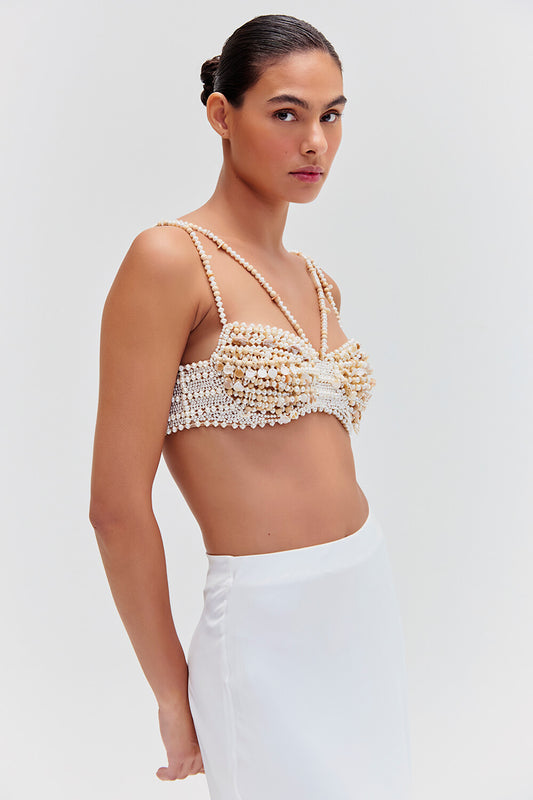 EsgotadoTOP CROPPED TULE TROPICAL PEARL CRU