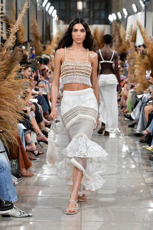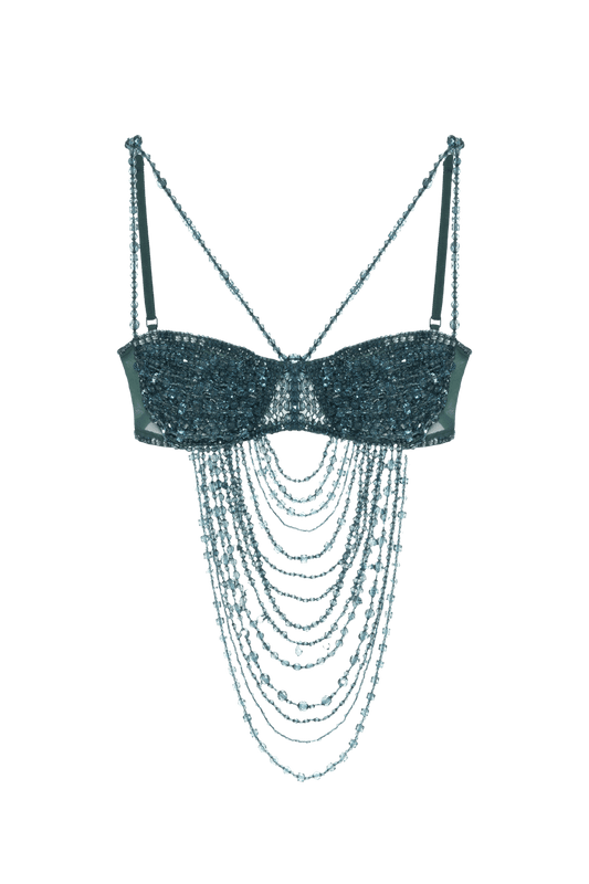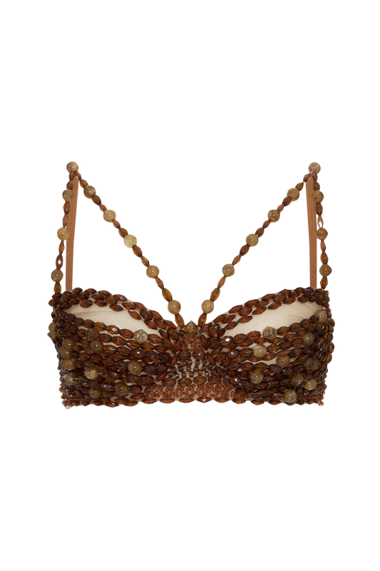 TOP CROPPED CRYSTAL EMBROIDERY BEGE