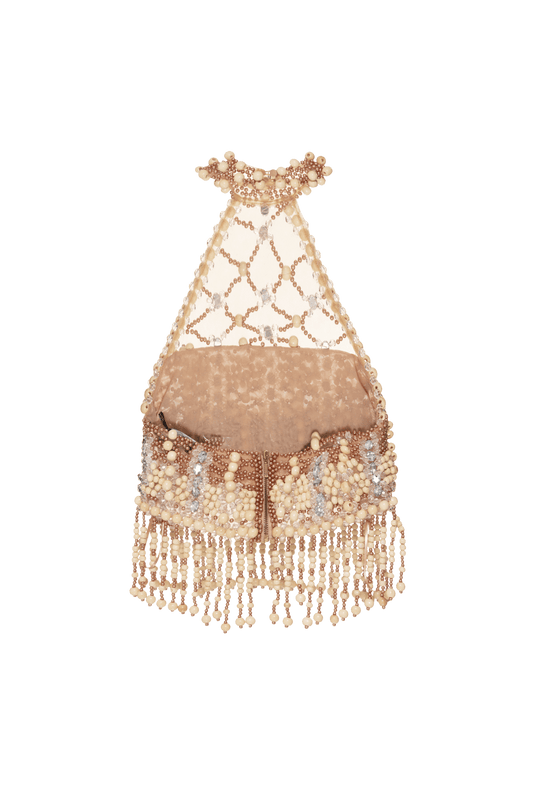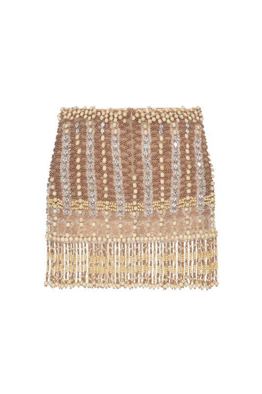 VESTIDO CURTO CRYSTAL EMBROIDERY BEGE