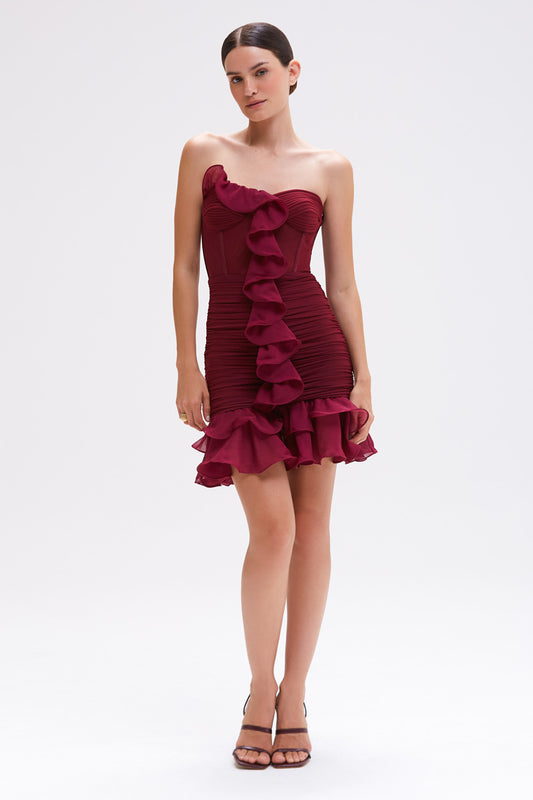 VESTIDO CURTO CHIFFON WONDERLAND VERMELHO ESCURO
