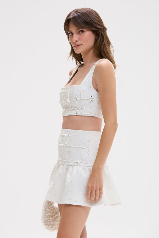 VESTIDO CURTO PEARL TWEED OFF WHITE