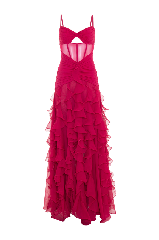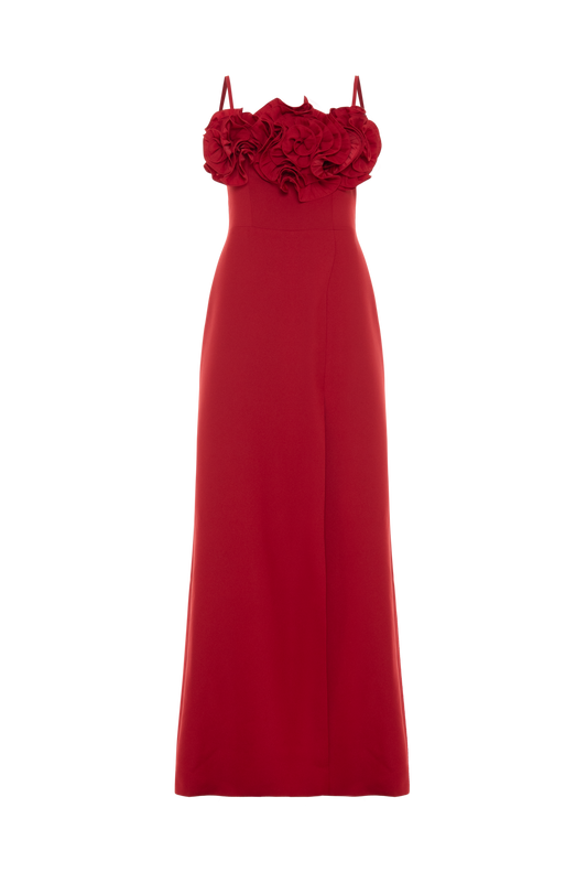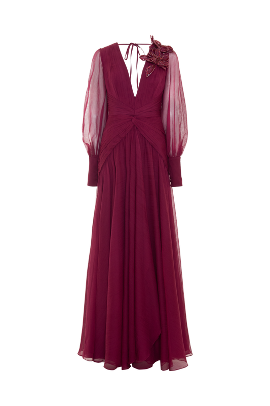 VESTIDO LONGO CHIFFON WONDERLAND VERMELHO ESCURO