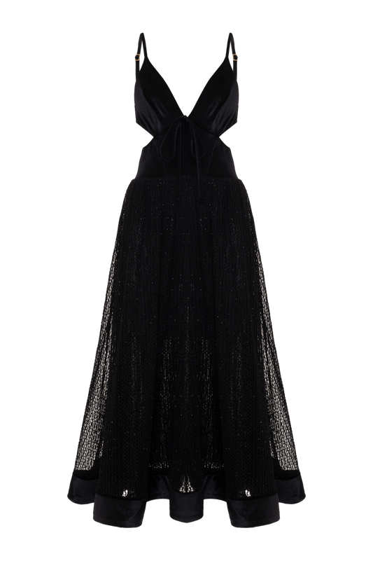 VESTIDO MIDI VELVET ALLURE PRETO