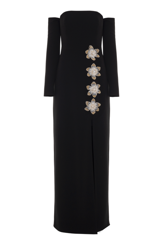 EsgotadoVESTIDO LONGO CREPE MYSTIQUE PRETO