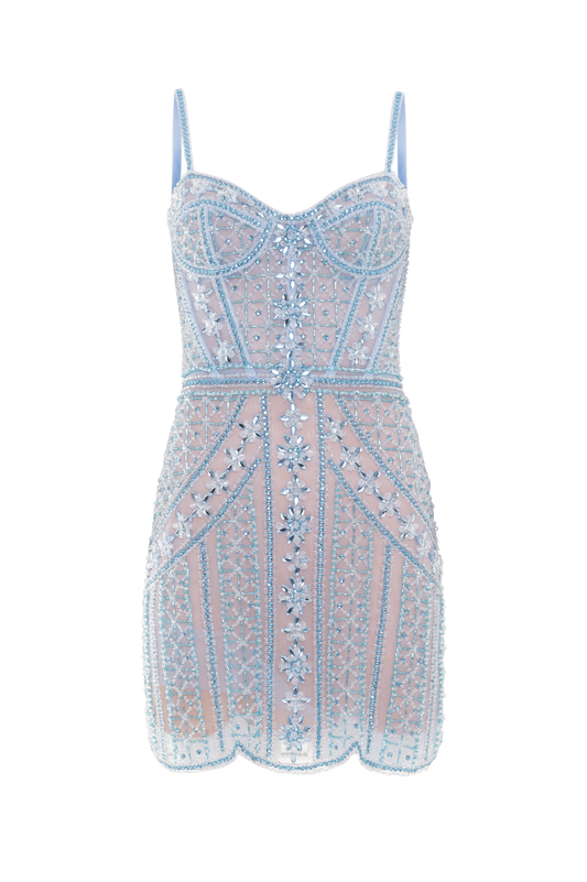 VESTIDO CURTO BUTTERFLY EMBROIDERY AZUL CLARO