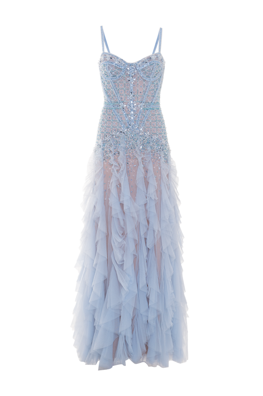 VESTIDO LONGO CRYSTAL EMBROIDERY AZUL CLARO
