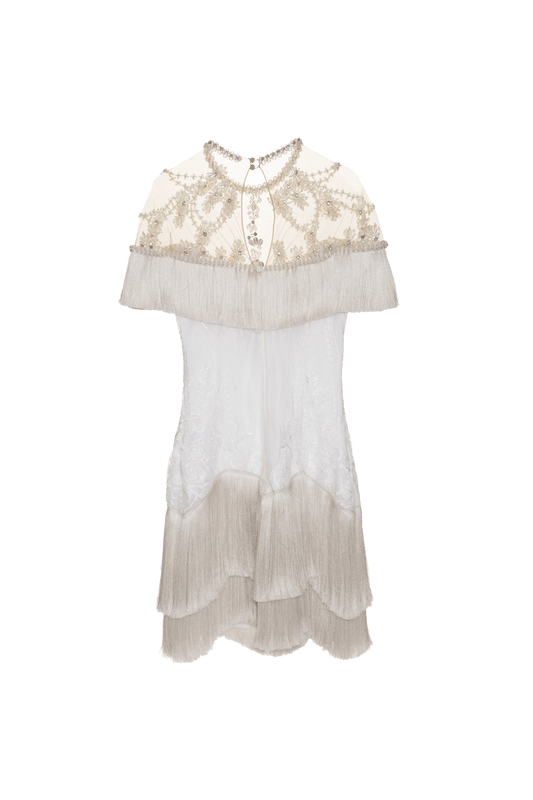 VESTIDO CURTO BORDADO RENDA CRYSTAL OFF WHITE