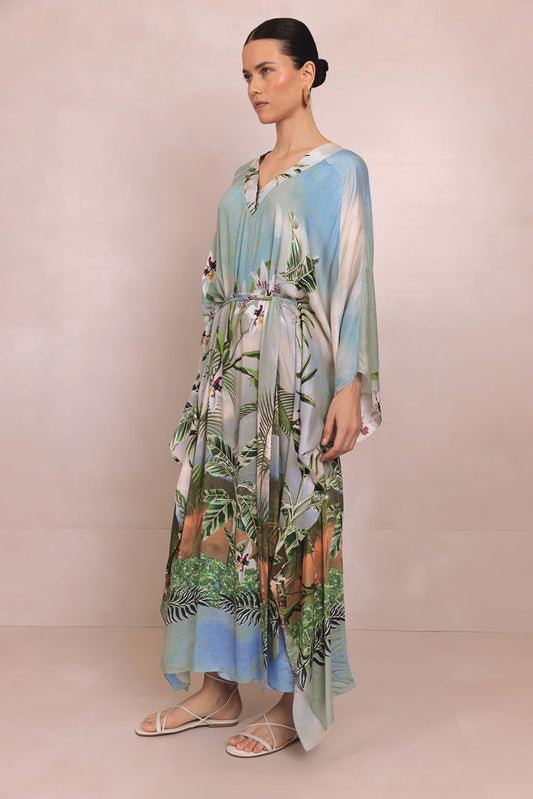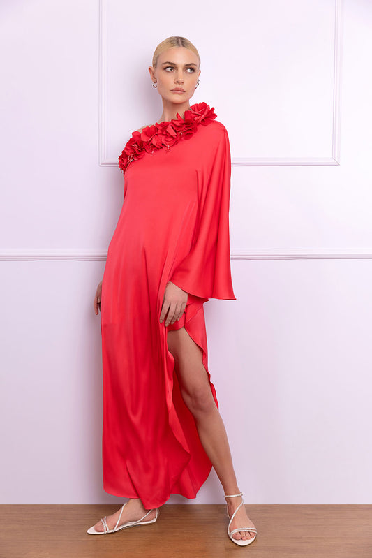 VESTIDO LONGO MANGA ÚNICA CHIFFON ÍRIS AZUL