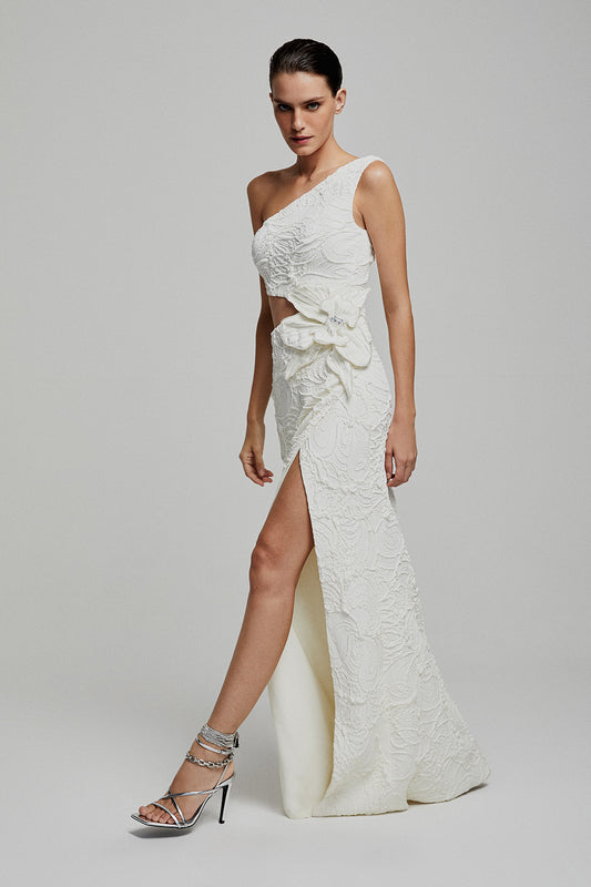 VESTIDO LONGO LYCRA PETALS OFF WHITE