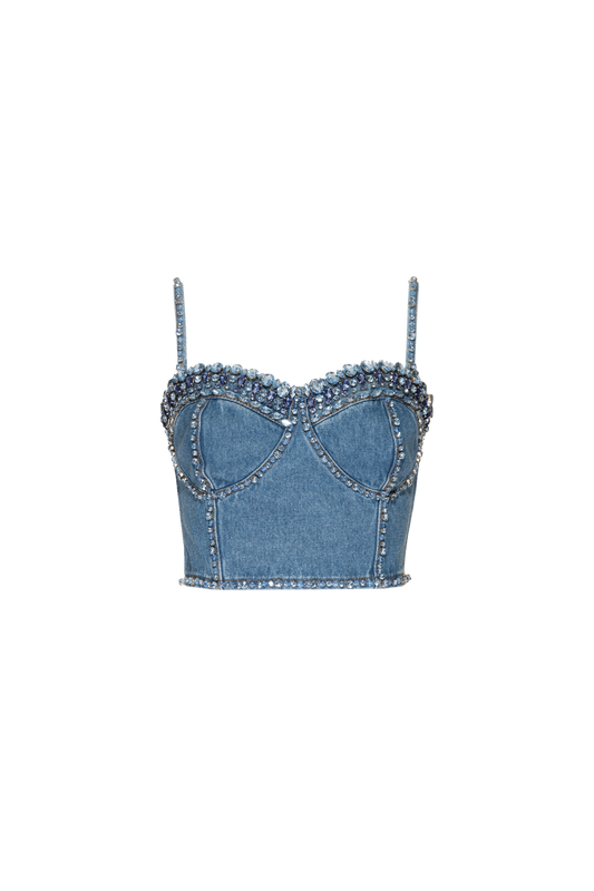 TOP CROPPED BORDADO ESSENTIAL DENIM AZUL