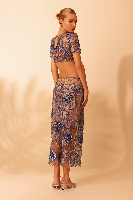 SAIA BORDADA TULE GLAM MOSS AZUL
