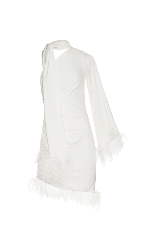 VESTIDO CURTO PLUMAS CETIM SERENITY OFF WHITE