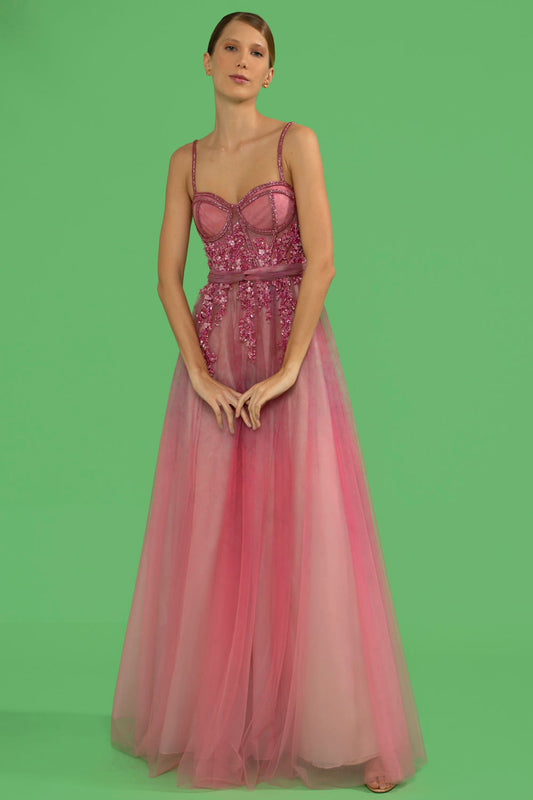 VESTIDO LONGO CORSET BORDADO COTTON CANDY ROSA