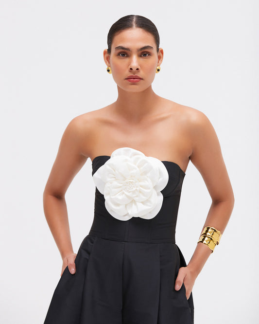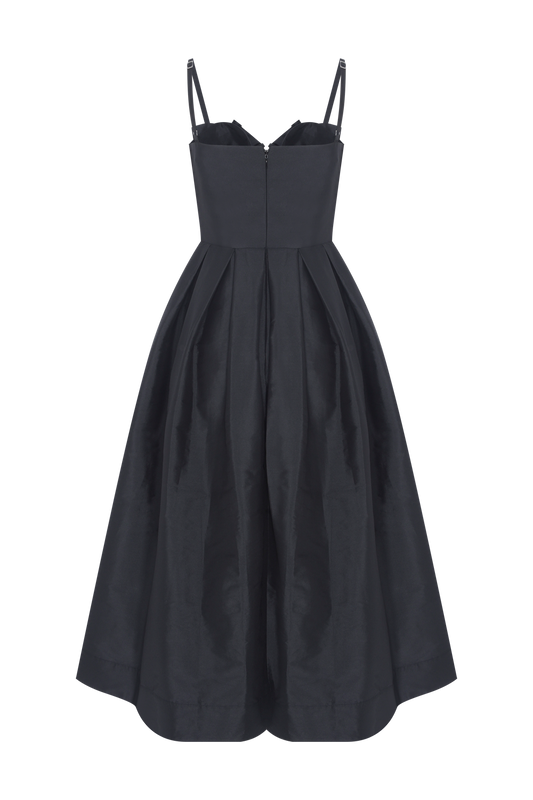 VESTIDO MIDI TAFETÁ BLOOM PRETO