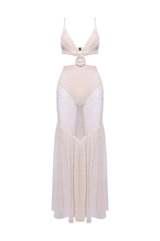 À primeira vista, pode parecer que o vestido longo fala por si. Mas é nos detalhes que mora a assinatura da PatBO — e é aí que a peça se diferencia das demais.