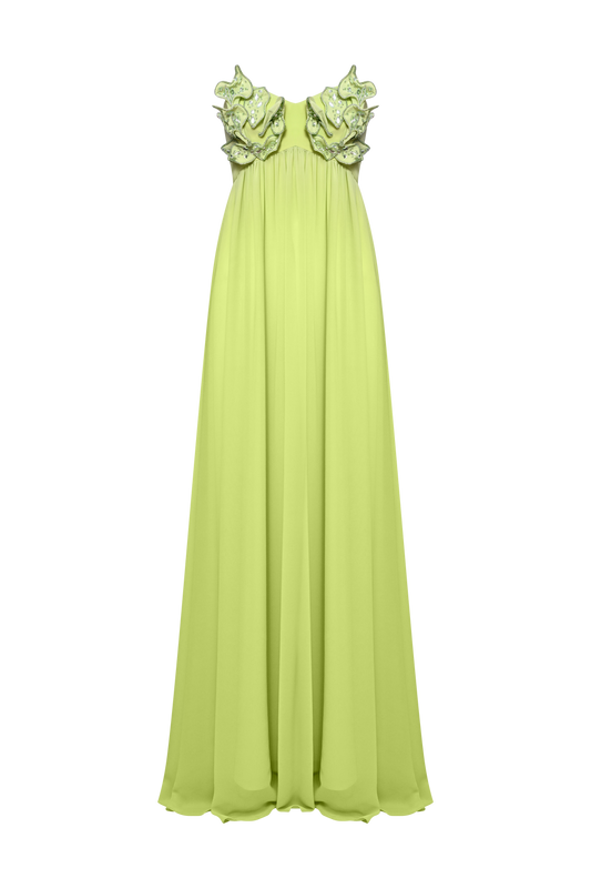 Apostam em bordados, flores aplicadas, drapeados e babados com equilíbrio. Detalhes na cintura, nas mangas ou no decote são pensados para destacar pontos-chave com muito estilo.