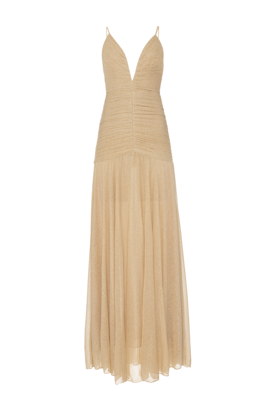 VESTIDO LONGO TULE LUREX GLOWING DOURADO