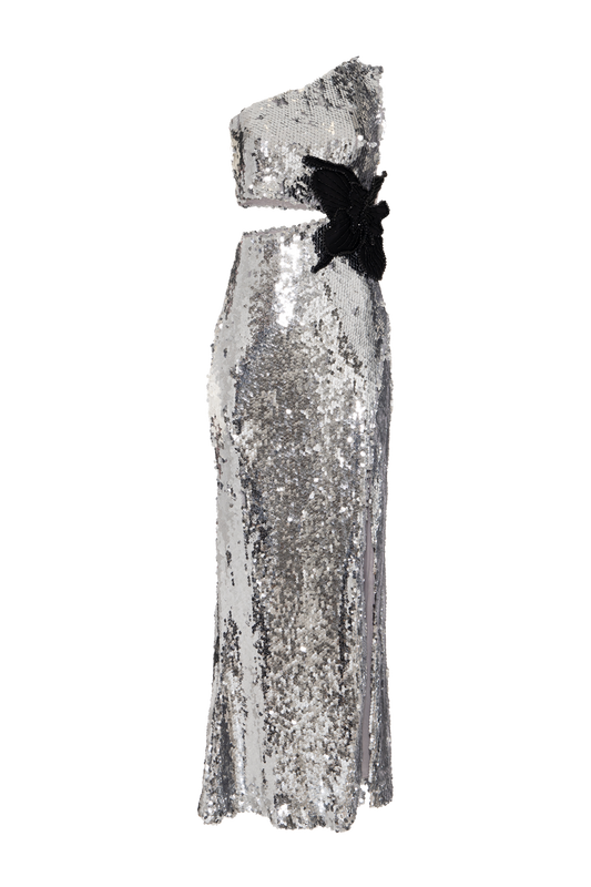 VESTIDO LONGO PAETÊ ESCAPE PRATA