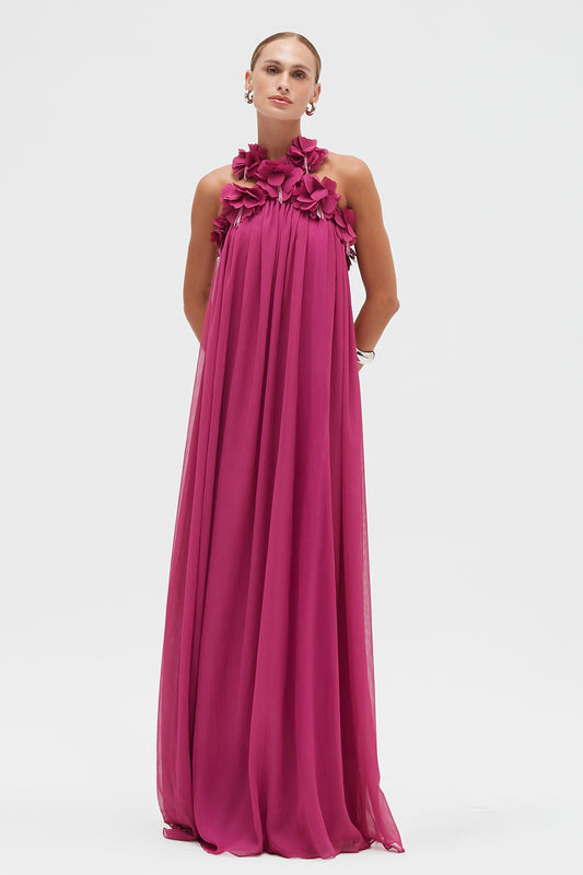 VESTIDO LONGO SILKY GRACE FUCSIA