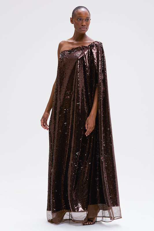 VESTIDO LONGO PAETÊ TIMELESS MARROM
