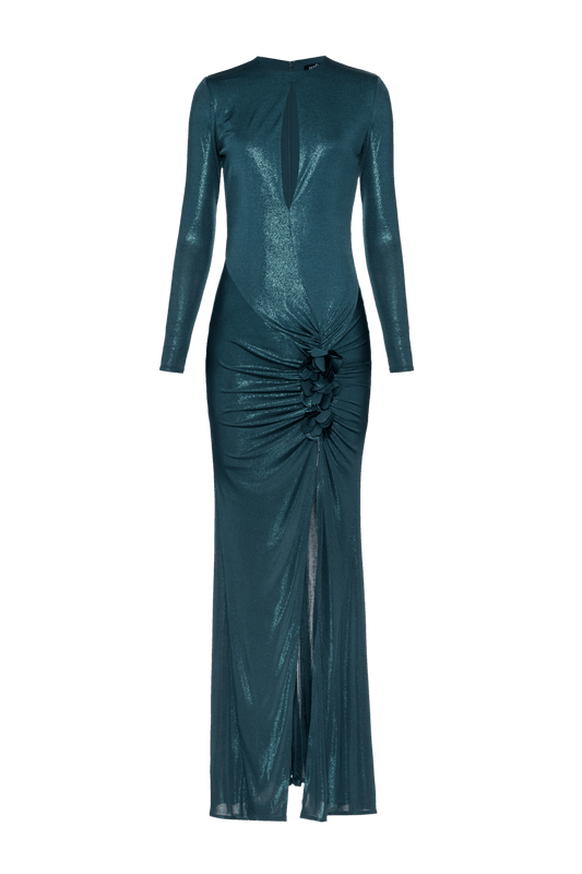 VESTIDO LONGO JERSEY FOIL VERDE ESCURO