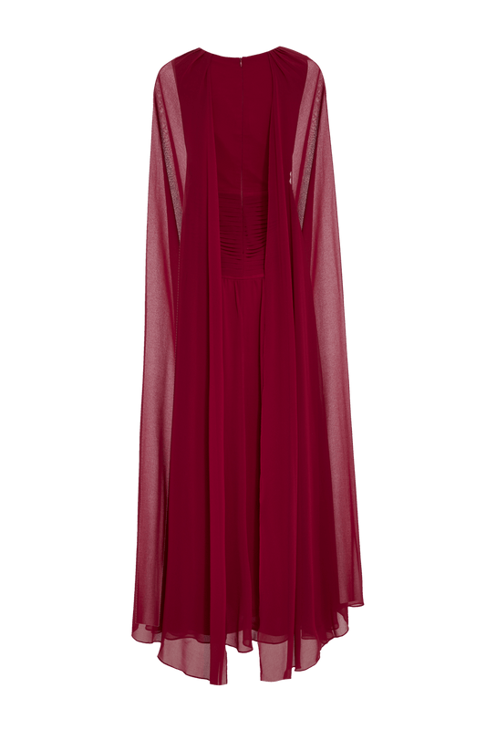 VESTIDO LONGO CAPA CHIFFON MIDNIGHT VERMELHO ESCURO