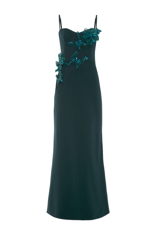 VESTIDO LONGO CREPE MYSTIQUE VERDE ESCURO